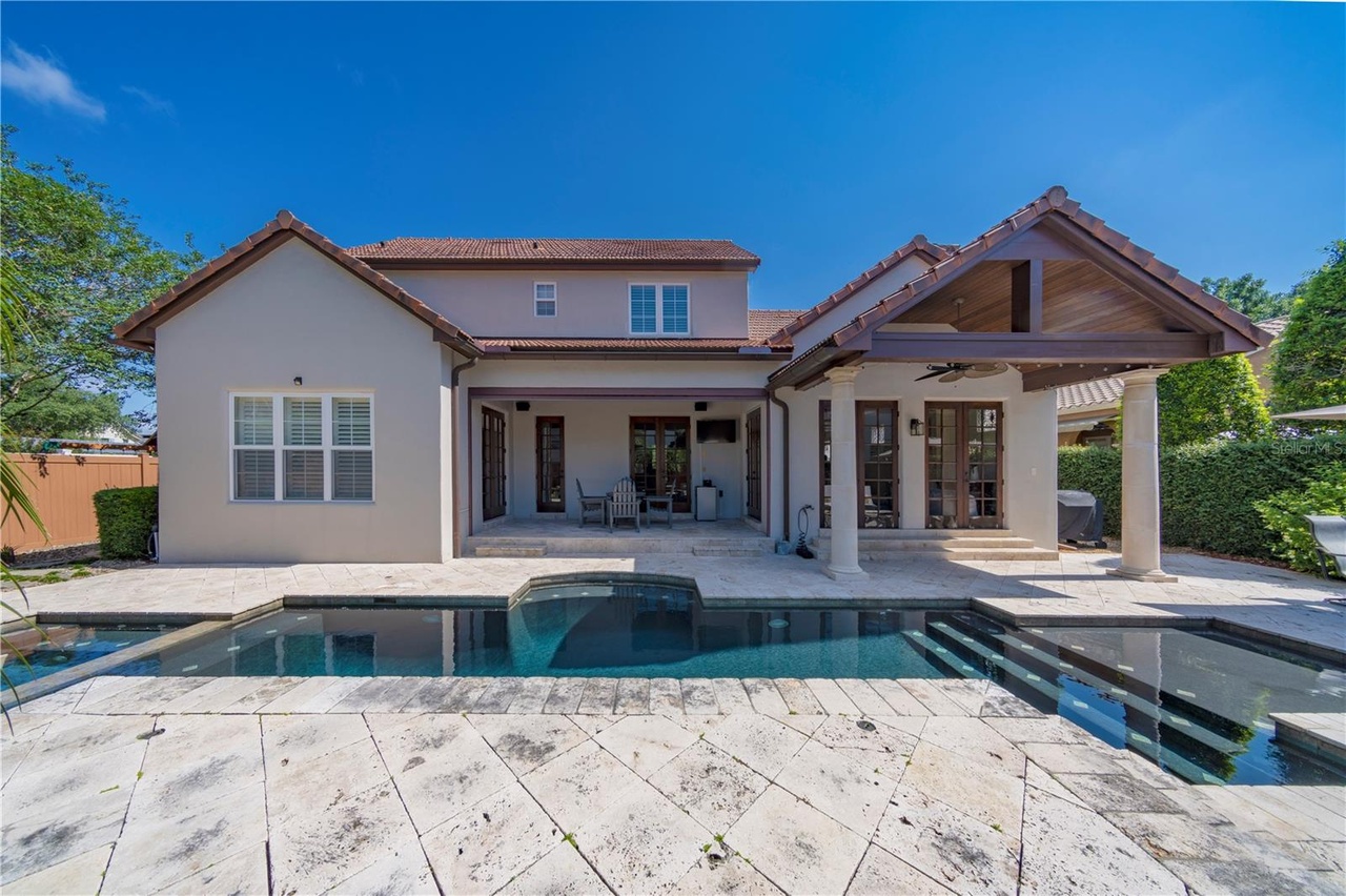 Presenting an extraordinary custom traditional home crafted by esteemed builder George Driscoll. Situated on Place Vendome, this remarkable property impresses from the moment you arrive. The bricked drive seamlessly continuing into the garage sets the stage for timeless elegance. Boasting four bedrooms and three and a half baths, including a pool bath, this spacious home offers refined living. Spanning approximately 4,049 square feet under air, this residence provides ample space for comfort and relaxation. As the first and only owners, meticulous care and attention to detail are evident throughout. Step through the inviting entryway and experience the artistry of this exceptional home. The primary living spaces, including the family room and living room, exude warmth and sophistication, setting the stage for memorable gatherings. Adjacent to the garage, a mudroom and laundry room combination connects the kitchen, featuring Wolf, Sub-Zero, and Bosch appliances, as well as a dinette and breakfast bar, creating a seamless flow for everyday living. Retreat to the luxurious primary suite, complete with an updated bath and a spacious walk-in closet. From the primary bed, enjoy enchanting views of the pool, creating a serene sanctuary for relaxation. An elegant office space provides a tranquil setting for work or study. Ascend to the second floor, where a versatile living space beckons. Here, a wet bar complements the entertainment possibilities, while a hidden doorway leads to a hallway connecting the areas near the wet bar to the exclusive theater room, enhancing the cinematic experience. Three additional bedrooms offer comfort and privacy, with two bedrooms conveniently sharing a Jack and Jill bath. All bedroom closets are thoughtfully built out to optimize storage and organization. Stepping outside, the motorized screen-enclosed lanai invites you to embrace the Florida lifestyle. The resurfaced heated pool, adorned with beautiful stone accents, includes an integrated jacuzzi for ultimate relaxation. The fully fenced yard provides an expansive and secure space for pets to roam freely. This exceptional property offers an exquisite place to call home with convenient access to the Winter Park Racquet Club, Park Avenue, Maitland, and the picturesque Chain of Lakes.
