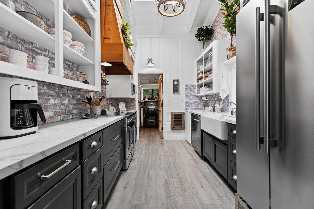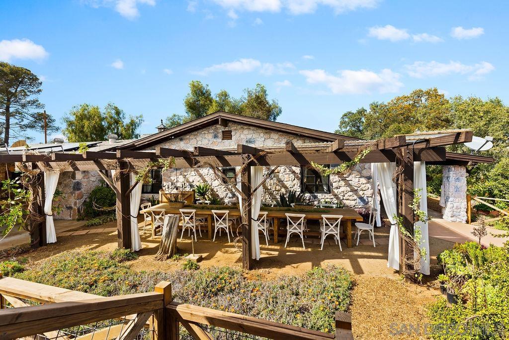 Welcome to Montecito Cottage, a captivating retreat where Tuscan whimsy harmonizes with farmhouse charm, all set against the backdrop of breathtaking mountain views. This vintage-inspired, single story two-bedroom, two-bathroom haven includes a separate guest house complete with a bathroom, shower, and kitchenette, making it perfect for a tranquil getaway on a 0.75 acre lot. Surrounded by lush gardens, enchanting fountains, and a sprawling yard plus solar, you’ll find yourself embraced by nature’s serenity while still enjoying all the comforts of modern living. Step inside to discover an exquisite blend of contemporary design and rustic allure, where every detail radiates warmth and character. The fully equipped kitchen features high-end appliances, and the cozy ambiance is enhanced by a wood-burning fireplace. Outdoors, the property offers several garden areas, ample seating to enjoy the peaceful surroundings, and a gated pool perfect for sunny days. The outdoor kitchen, complete with a grill, sink, mini fridge, and pizza oven, invites you to indulge in alfresco dining at its finest beneath a 20-foot outdoor dining space. After a day of exploration, rinse off in the outdoor shower next to the pool and unwind with a glass of wine as the sun sets. This property is not only a private sanctuary to call home but also can be an ideal venue for boutique weddings, photoshoots, intimate dinners and other special gatherings. With private parking and tranquil surroundings, every event becomes a cherished memory framed by majestic mountains and verdant landscapes.Experience the allure of Alpine at Montecito Cottage, where relaxation and celebration come together in perfect harmony, creating your home away from home or personal residence. This is a must see!