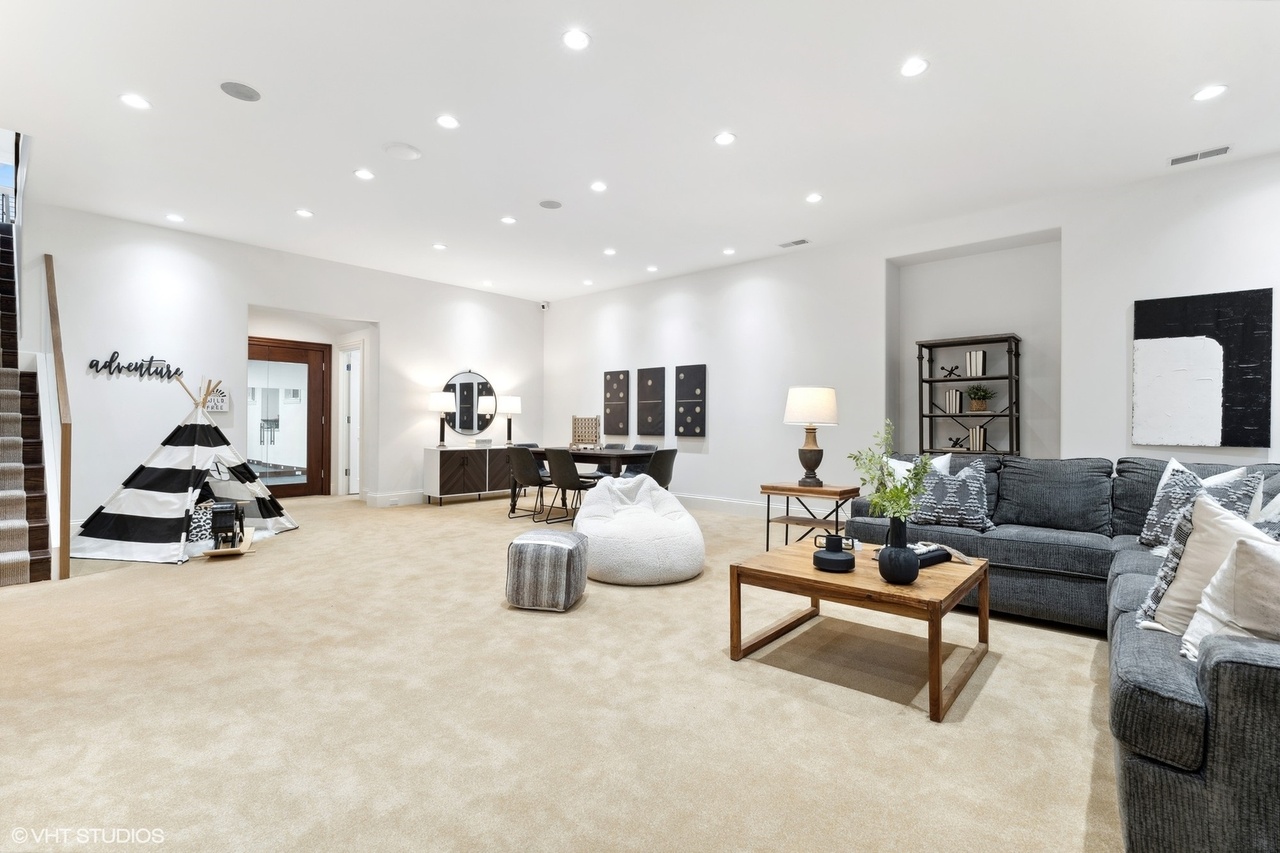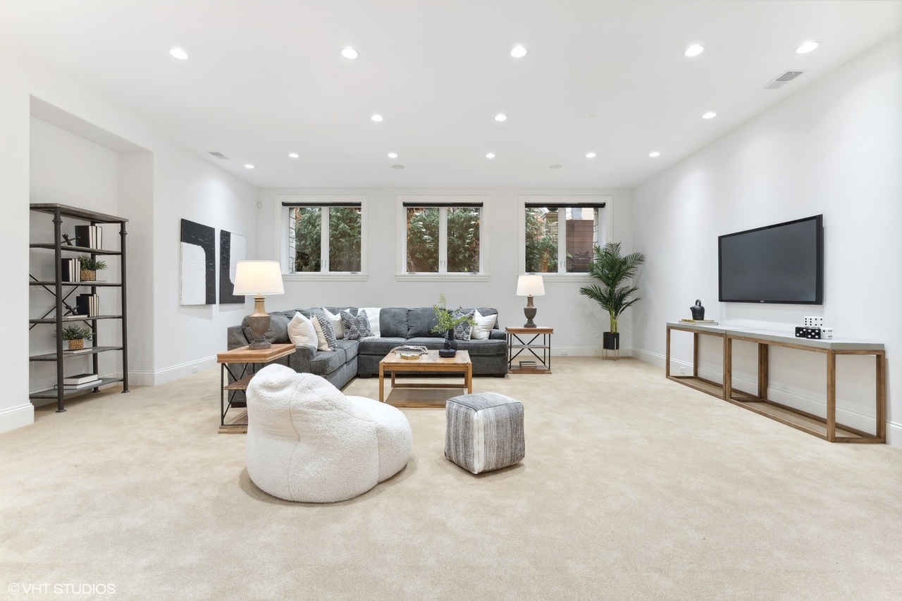 Completely customized 8,000sf DOUBLE LOT residence with newly rebuilt ATTACHED 5 car garage situated a half a block from the 606 on prime block of Bucktown. Built by renowned developer Environs and substantially renovated in 2019. Charming exterior sets the stage for the home’s quality of craftsmanship from the Spanish tile roofing and decorative corbels, to the Ipe privacy fencing with lush landscaping and Ipe wood walkways. Thoughtful and ideal floorplan flooded with light, welcoming foyer, spacious and bright formal living room and dining room, 2 powder rooms, sunken great room with 12′ ceilings overlooking fabulous outdoor spaces and car collectors’ dream garage. Newly renovated chef’s kitchen boasts commercial grade appliances, walnut and stainless steel countertops, breakfast nook, walk-in pantry and office off of the kitchen. 2nd level features 4 generously sized ensuite bedrooms with heated flooring in the bathrooms and one of two laundry centers. Impressive primary suite features incredibly spacious bedroom with gas fireplace, 2 huge walk-in closets, and luxurious bathroom with oversized steam shower, and new soaking tub. Lower level features radiant heated flooring, spacious and bright family room, 1 ensuite bedroom, large office, additional powder room, abundant storage, and massive new home exercise center with sauna. Completely redesigned outdoor spaces creating a secluded oasis well-appointed with beautiful tall trees, a large water feature, and a synthetic turfed yard, Ipe stairs leading to a tremendous extra wide garage roof deck made of Ipe wood. Large spiral stair leading to semi finished roof. Coveted mudroom leading to attached 5 car dream garage with exceptional elements such as its own HVAC, 12 1/2′ ceilings, professional lighting, plenty of space for a workshop, monitors for the home security system, and a glass garage door to the interior yard. Top end security cameras, audio visual & internet system with central controller, electric blinds and home generator. Nestled on tree-lined Honore in the heart of Bucktown with an extra wide alley, convenient access to 90/94, blue line, Metra, restaurants and boutiques on Damen, Churchill and Walsh Parks, & neighborhood favorites such as Etta, Club Lucky, and the 606 Trail.