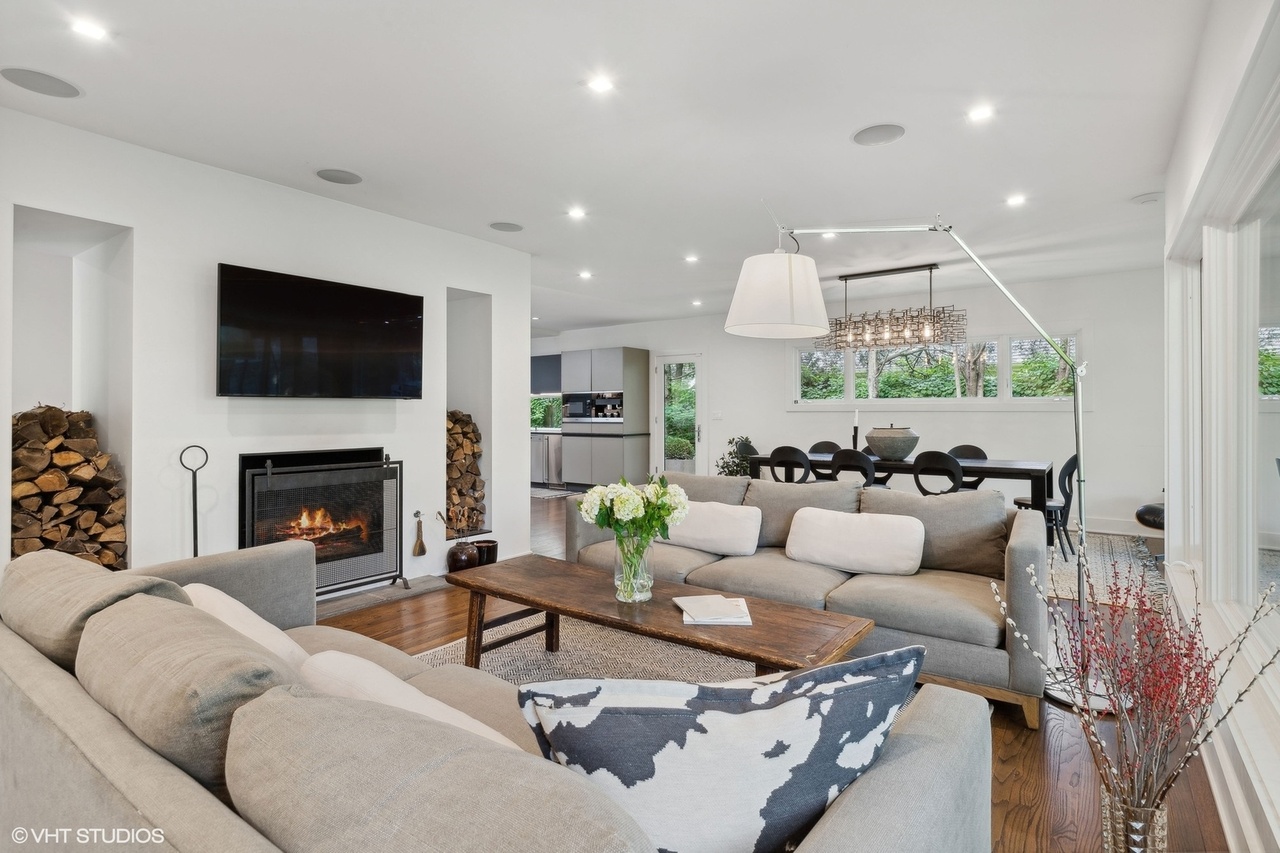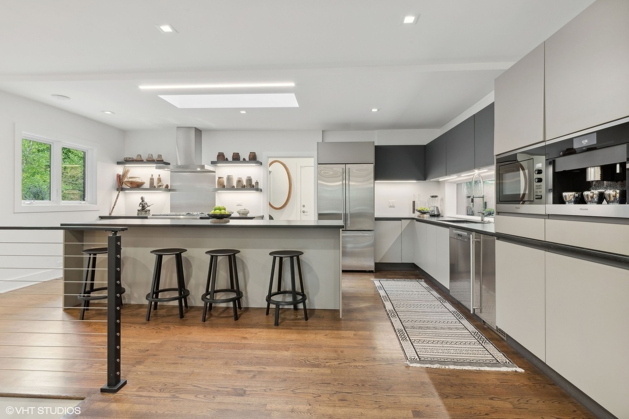 Single-story living at its finest! Set on a sprawling 1/3 acre lot in East Glencoe, this spectacular California contemporary ranch is turn key perfection. Refined to a whole new level of sophistication by a notable Chicago designer, making this home extraordinary. Recently renovated in 2020, no expense was spared in crafting a residence of unparalleled luxury. From the flawless interior to the meticulously manicured exterior, every detail has been carefully considered to offer the utmost in comfort and style. Floor to ceiling Pella windows and skylights bathe the interior in natural light, seamlessly blending indoor and outdoor spaces. A bluestone walkway entrance with lush hydrangea beds and organic landscaping sets the tone before entering thru the front glass door. The open-concept floor plan features a spacious living room boasting a wood-burning fireplace, a dining area, and gleaming hardwood floors throughout. The custom modern kitchen is a chef’s delight, featuring imported Italian cabinetry, natural stone countertops, and top-of-the-line Thermador and Miele appliances, including built-in coffee and ice makers. The office area with panoramic views of the yard, leads to the serene blue slate patio, perfect for dining and lounging amidst the lush landscaping. Tranquil & serene primary suite with spa-like bath featuring marble tile, a custom vanity with floating cabinetry, and a seamless walk-in double shower. Two additional bedrooms, two bathrooms with custom marble tile, and a convenient laundry room round out the main level. The attached two-car heated garage enters into a mudroom area for added convenience. The lower level with a finished bonus recreation room, offering even more space for relaxation and entertainment. Nothing left to do but move in and enjoy!