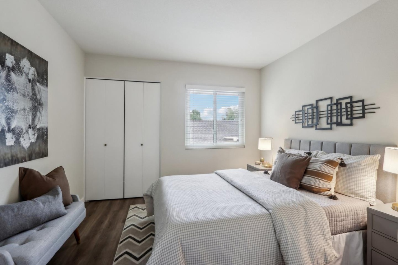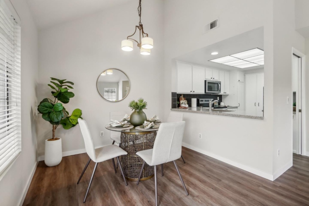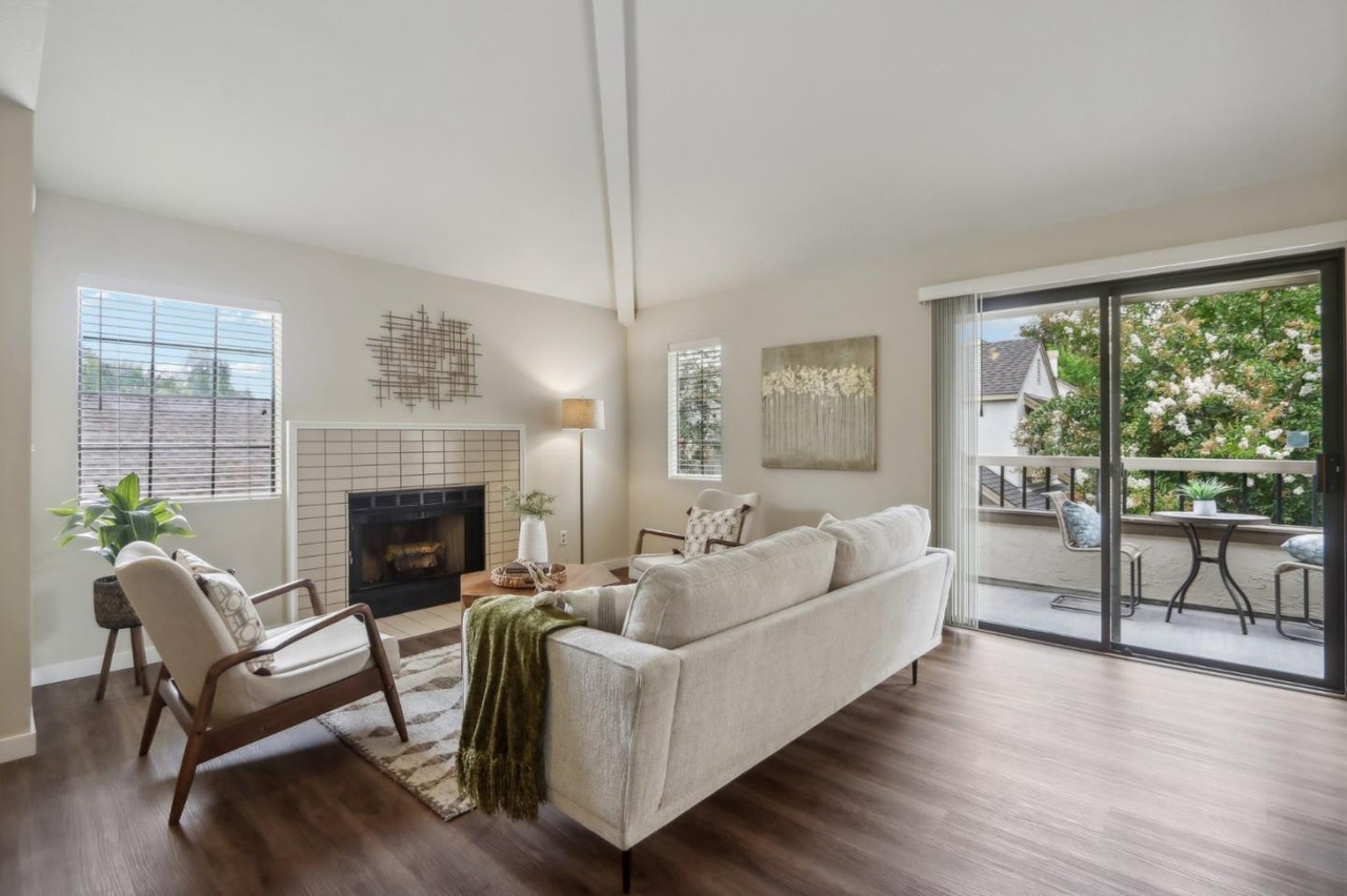 Beautiful light and bright top floor end-unit with vaulted ceilings, wood burning fireplace, and luxury vinyl flooring. Updated kitchen with white shaker cabinets, granite counters and upgraded appliances. The master suite includes a dressing room with lots of closet space and custom shelving. 2 car detached garage with plenty of storage space. Freshly painted interior and ready for move in. The community features an inviting landscape with plenty of redwood and flowering trees along with 2 swimming pools with hot tub, 1 tennis court and clubhouse. Located near major tech firms like eBay with quick access to 17, 280 and 85.