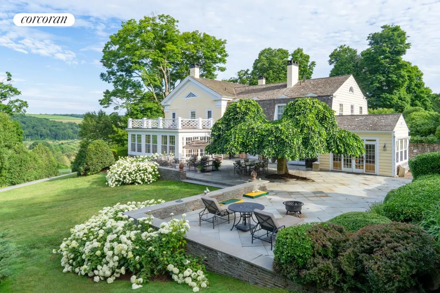 Set on 118 Bucolic acres in the heart of the Hudson Valley, Smithfield Farm is an exquisite estate, offering breathtaking, sweeping western views of the Smithfield Valley and the Catskill mountains. The centerpiece of the estate is a meticulously preserved 1790 Colonial main house with a stately brick exterior and a grand center hall. Inside, you will find four woodburning fireplaces, central air conditioning, and beautifully restored original details. The grand entertaining rooms include a 27-foot-long living room with an adjacent sunroom boasting floor to ceiling windows facing south, east, and west, as well as a formal dining room and billiards room both with original 18th century wood paneling. The ground floor also features a windowed kitchen with a separate windowed breakfast room, a home office and a mudroom. The private quarters upstairs are equally impressive. The primary suite, a corner room, offers a private terrace and an en-suite windowed bathroom with two sinks and a large shower. There is a guest suite with two bedrooms and an en-suite bathroom as well as four additional bedrooms that share a hall bathroom. This wing also has a powder room and laundry room. The home has a generator. A unique highlight of the property is the magnificent Camperdown Elm, located on the expansive terrace of the main house. This rare tree, dating back to the 1940s, provides a beautiful, shaded canopy, perfect for relaxing with cocktails and dinner while enjoying stunning sunsets over the valley. For recreation the estate offers a 48′ x 17′ gunite heated pool with a hot tub and large terrace, and tennis court discreetly concealed by mature plantings. Additional accommodations include a four-car garage with a two-bedroom, two-bathroom guest apartment above, featuring a living room with a 13’9 ceiling, a wood-burning fireplace, central air-conditioning and a terrace overlooking the paddocks. There is also a caretaker’s cottage discreetly located at the top of the property, which has three bedrooms. Designed for Polo, Smithfield Farm is ideal for all equestrian or athletic pursuits. The main barn includes 28 stalls, with additional facilities, including two summer barns, jumping and exercise rings, multiple paddocks and turn out areas, and an infinity polo field with unmatched views. Smithfield Farm is a rare offering, an unparalleled combination of historical charm, luxurious amenities, and stunning natural beauty. Co-Exclusive
