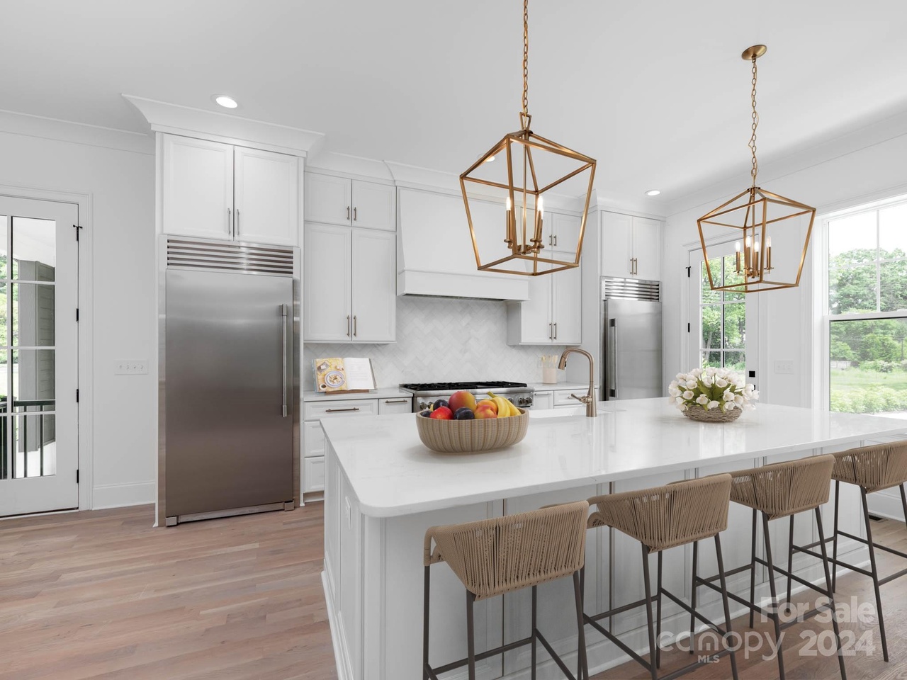 This beautiful custom home is move in ready! The circular drive, the porta cochere and the three car garage make it is easy to come and go and offers plenty of parking for you and your guests. This gourmet kitchen features a huge quartz island, a custom built hood, featuring Thermador professional gas range and a separate full size freezer and refrigerator. Custom cabinets throughout with luxury high-end finishes. The large dining room, open great room, wet bar, butlers pantry and media room make this home a wonderful place to entertain. Custom closets and walk in pantry…and much more! Come on over and check this one out. It wont disappoint. Minutes to downtown CHarlotte and much more.