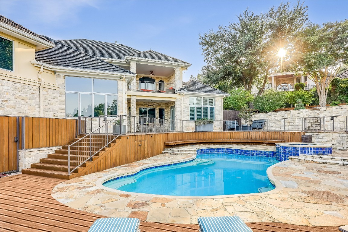 Located within the highly sought-after gated community of Westview in Westlake, this freshly revealed estate embodies resort-style living at its finest. Situated on sprawling grounds, this serene setting offers panoramic views, of the coveted Mount Bonnell. Greeted by impeccable landscaping and lush greenery, it’s a true picturesque backdrop for this remarkable home. Upon stepping inside, the quality of construction is immediately apparent. The home features a thoughtful floor plan, generous bedrooms, multiple living spaces, a home theater, and a three-car garage. Expansive windows frame breathtaking panoramic views of the surrounding hillsides, providing a constant reminder of the natural beauty that surrounds this oasis. With an abundance of space both indoors and out, this home is an entertainer’s dream. The open-concept floor plan seamlessly connects the living spaces alike. Whether enjoying a cozy evening by the fireplace or dining al fresco at the pool cabana, every moment spent here is filled with luxury and sophistication. The gourmet kitchen is a chef’s delight, featuring top-of-the-line appliances, and a spacious center island. A custom banquette and a wine cellar round out this culinary creation. Retreat to the lavish primary suite, where tranquility and comfort await on the main level, complete with a spa-like bathroom and dual spacious walk-in closets. Additional features include a home theater, a wine cellar, and a resort-style swimming pool and spa, creating a true paradise for relaxation and recreation. Indulge in the ultimate entertainment space: a stunning outdoor oasis featuring the finest cabana, kitchen, and an outdoor workout area, all surrounded by lush tropical landscaping. Experience the pinnacle of luxury living in the heart of Westlake with this exceptional family estate. Impeccably designed and thoughtfully appointed, it offers a lifestyle of unparalleled comfort, convenience, and indulgence.