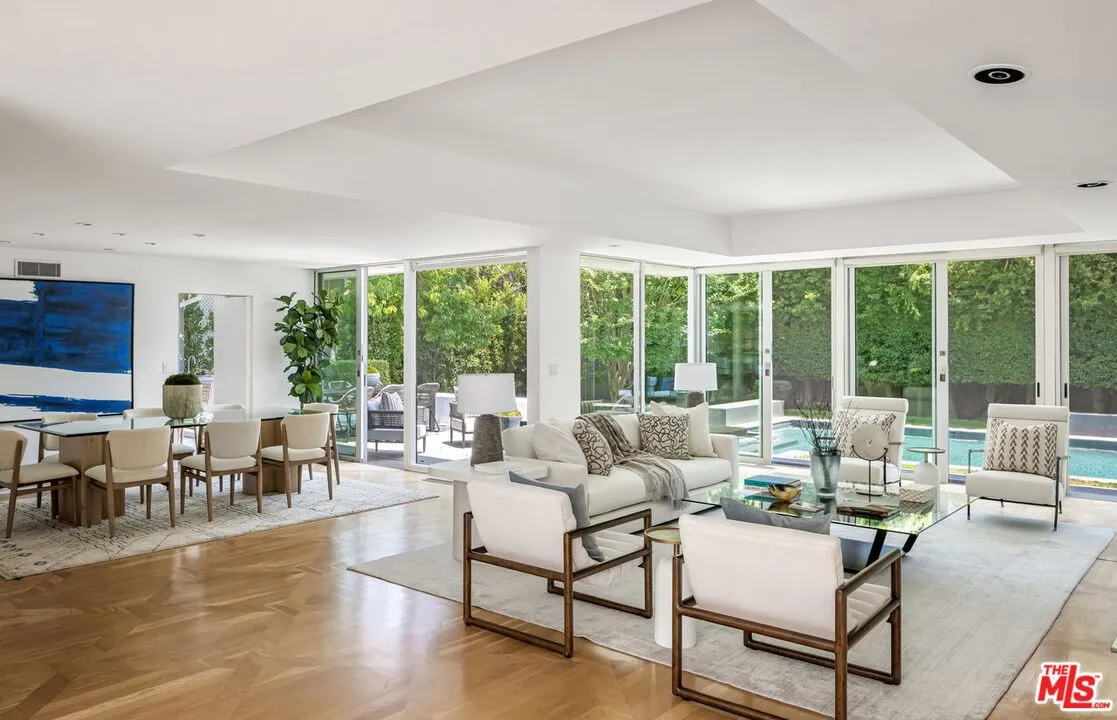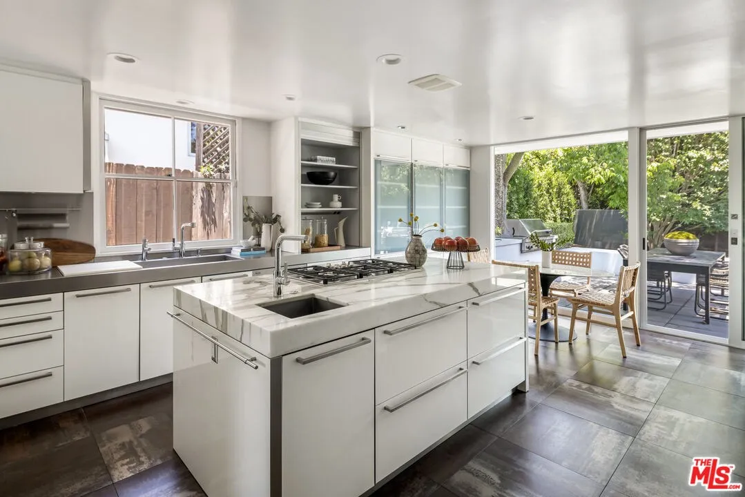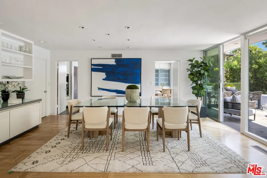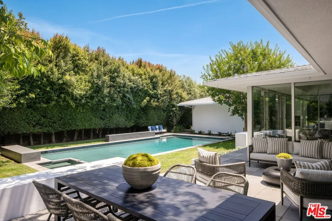 Extensively remodeled, gated 1960’s single story Contemporary by Buff and Hensman, F.A.I.A., architects of Case Study House #20, on a large lot (13,130 sq ft per ass. map) in a prime, north of Sunset, Brentwood location. Clean lines, open floor plan, airy, sun-filled spaces, wood floors, walls of glass & ideal indoor/outdoor lifestyle. All public rooms, as well as the primary bedroom and bath, open to lush, private yard with patios, swimmer’s pool/spa and lawn. Living room with fireplace, large dining area, inviting den with fireplace and eat-in cook’s kitchen are ideal for entertaining and everyday family living. Fabulous primary suite with fireplace, remodeled bath and dual closets plus 3 additional bedrooms as well as an office/5th bedroom. Desirable Brentwood neighborhood surrounded by estate properties in close in proximity to Barrington court shops and restaurants. Rare opportunity to acquire a classic architectural home on a large lot in an exceptional Brentwood location.