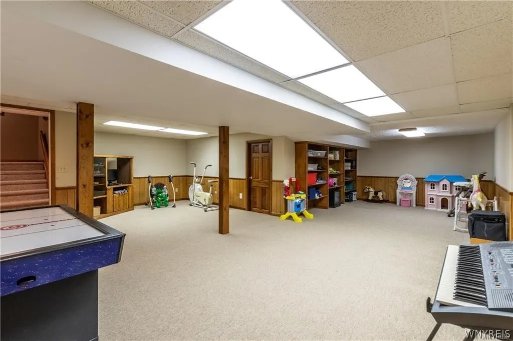 Welcome to this enchanting estate nestled in a woodland setting w/luxurious features & expansive amenities. Truly a departure from the ordinary, this custom home is situated on over 2 acres & offers a private & serene environment. The impressive 2-story foyer opens to the LR w/cedar plank vaulted ceiling, skylights, gas fireplace & formal DR w/step ceiling & hardwood flooring. Gorgeous kitchen w/hickory hardwood flooring & soft close cabinetry, lighted crown molding, granite counters, gas cooktop, built-in oven & microwave. Year-round Florida rm w/cathedral ceiling, BBQ, refrigerator , granite counter & o/looks wooded grounds featuring a 20×40 in-ground heated pool – separately fenced-in. The yard also features a tucked away 50×30 garage w/electric & natural gas line. FR has wall of windows, skylights w/solar shades & WBFP. 1st flr office w/desk, shelving, cabinets & separate entrance. Primary suite features gas FP, cathedral ceiling, dressing room w/four closets – one is walk-in. Primary bath w/separate shower & whirlpool tub. 2nd flr laundry. 3.5 car insulated attached garage w/heat, a/c & hot/cold water. Bsmt rec room w/walk-up egress to garage. C/A & vac. 2 sump pumps. 2 HWT’s.