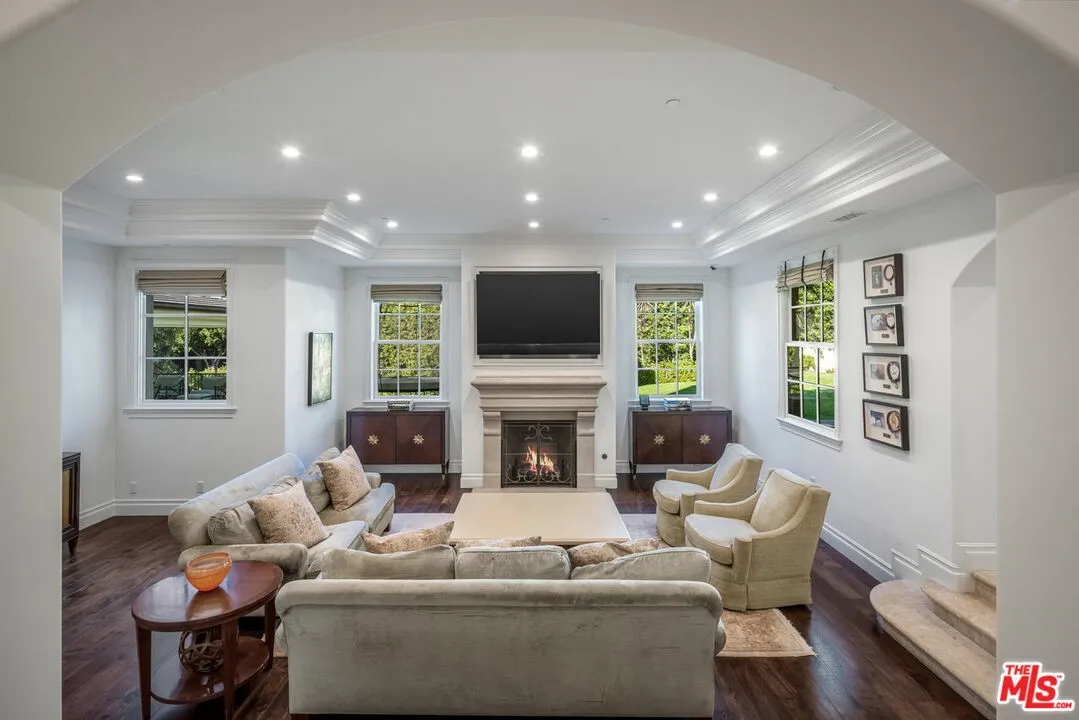 Timeless, sun-filled Transitional Mediterranean Estate with over 9, 000 square feet of space set behind tall walls and gates on over 25, 000 square feet of land with expansive yard in the estate section of Bonhill – just off of Tigertail Rd in prime Brentwood. Beautifully designed and exceptionally well-built home with great attention to detail, extraordinary craftsmanship and every imaginable space, amenity, and comfort for today’s lifestyle. Stately street presence, well-proportioned, grand scale spaces with clean, Contemporary lines all bathed in natural light, perfect floor plan, tasteful finishes set within tree-filled grounds and gorgeous canyon setting. Dramatic two-story foyer leads to well-detailed formal living and dining rooms and inviting library with built-ins and fireplace. Fabulous cook’s kitchen, generous breakfast room and large family room overlook lush, private, resort-like yard with breathtaking canyon views consisting of mature gardens, large lawn, expansive entertaining patios, pool, spa and entertaining cabana with fireplace and outdoor kitchen. Six spacious bedrooms, including a fabulous owner’s suite with separate sitting room, fireplace and terrace that overlooks the garden plus a lavish marble bathroom and two large fitted walk-in closets. Other spaces and amenities include spacious guest suite/ junior primary suite on the main level, fabulous fully equipped gym (Cybex, Technogym, Life Fitness) with bath (which could be a 7th bedroom), six fireplaces, upstairs playroom, two staircases, three-car garage and large, gated motor court, separate storage room, gorgeous stone and wood floors and extensive custom millwork & rich detailing throughout. Crestron audio visual system. Situated in close proximity to town, yet offering complete privacy, seclusion and tranquility, this special offering will envelop you in quality, elegance and charm from the moment you arrive. Great home for indoor and outdoor entertaining. A taste of a five-star Four Seasons Resort in the heart of Brentwood.