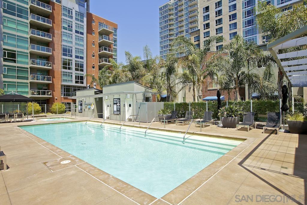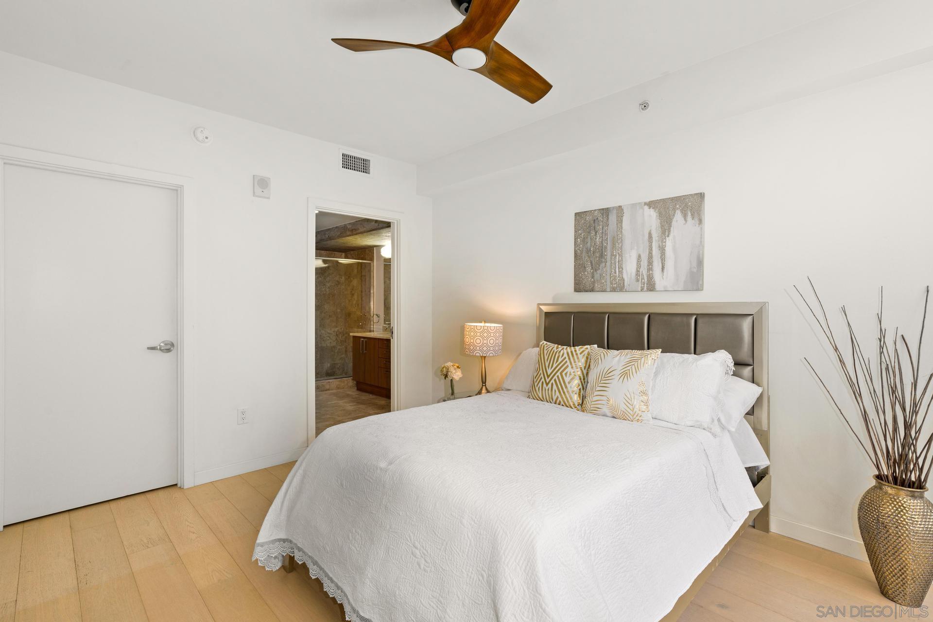 Experience unparalleled luxury living in the heart of East Village with this stunning 18th floor SW corner condo at The Mark. Revel in breathtaking panoramic views stretching from Downtown San Diego to Petco Park, Coronado, and the bay. Residence 1808 boasts a thoughtfully designed open floorplan with split bedrooms, ensuring every inch maximizes the awe-inspiring vistas. Recently renovated to the highest standards, the residence features a chef’s dream kitchen complete with designer cabinetry, exquisite quartzite countertops, and top-of-the-line stainless steel appliances. Modern touches like recessed lighting, ceiling fans, central air & heat, primary bedroom with finished walk in closet and new vinyl plank and wood flooring throughout enhance the ambiance of luxury. Step outside onto the expansive balcony to soak in the sights and sounds of the vibrant city below. The Mark sets a new standard for urban living with its comprehensive amenities, including 24-hour security and concierge service, a salt water pool and spa, a state-of-the-art fitness center, and multiple BBQ areas. Residents also enjoy access to a conference room, secured parking with two spaces allocated to this unit, and a large storage unit. Positioned in one of San Diego’s most coveted neighborhoods, this is an opportunity not to be missed for those seeking convenience, entertainment and the ultimate in luxurious urban living.