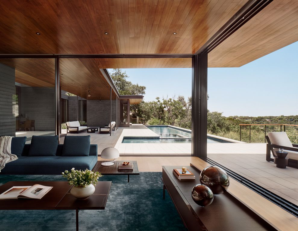 Experience the pinnacle of modern living in this newly completed custom home, designed by the renowned Matt Garcia and meticulously built by Waller Custom Homes. Located in the prestigious West Lake Hills, this expansive residence embodies sleek elegance and contemporary sophistication at every turn. The design seamlessly integrates indoor and outdoor living with floor-to-ceiling windows that pocket into the walls, offering an unobstructed flow from the living room to the stunning Hill Country outdoors.