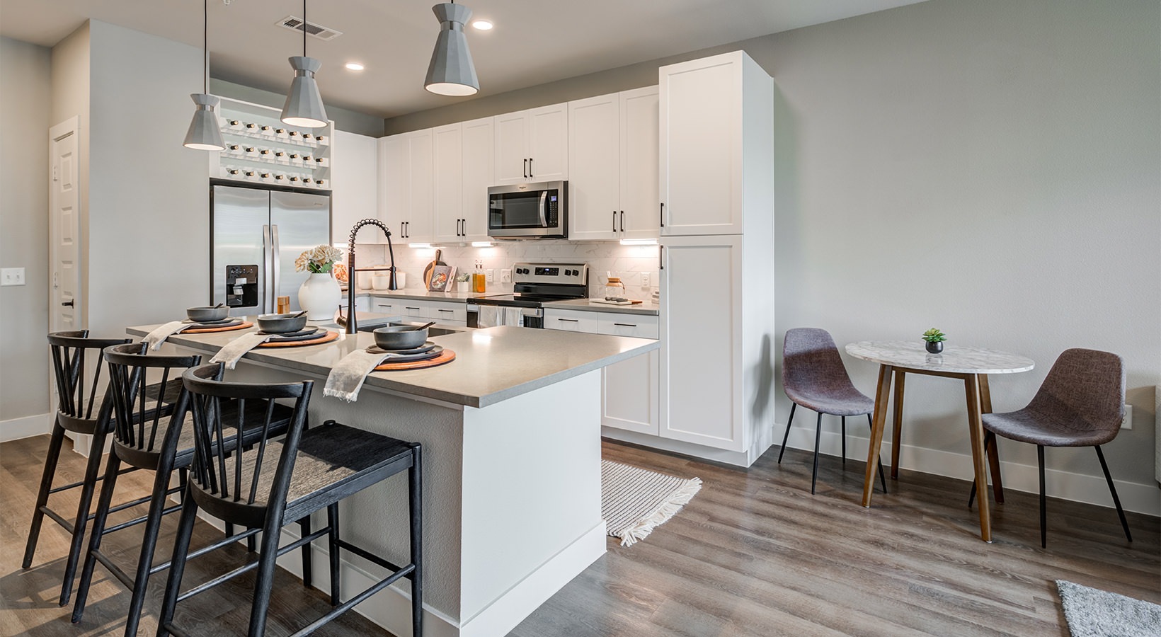 But the perks don’t end at your front door. As a resident of The Huntley, you’ll have access to an array of community amenities that enhance your living experience. Stay healthy and active in our fitness center, perfect for getting in a morning workout or unwinding after a long day. Our lounge area provides a comfortable space to relax and socialize with neighbors or entertain guests. Need to catch up on work? Our business center is equipped with everything you need to stay productive without leaving the community.